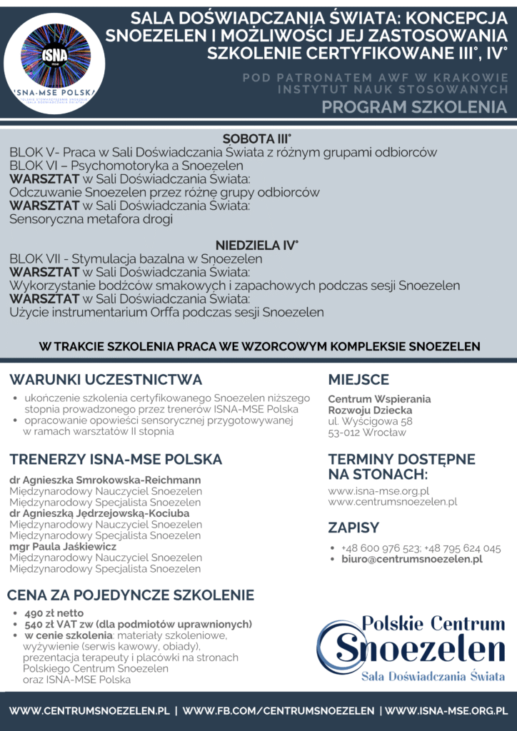 E-MAIL: BIURO@CENTRUMSNOEZELEN.PL | TEL. +48 600 976 523; +48 795 624 0498